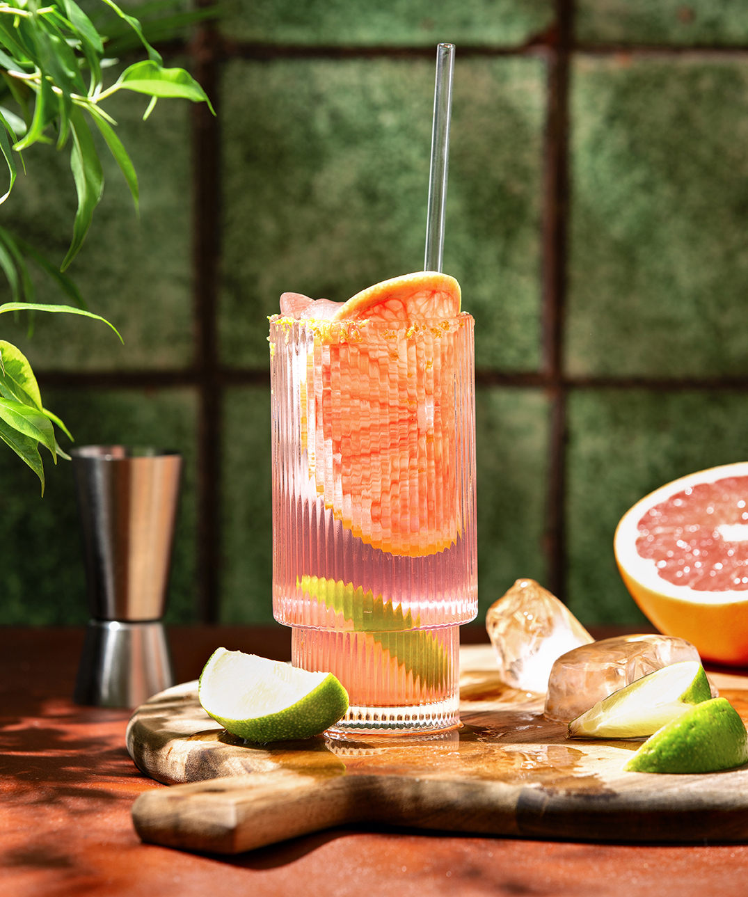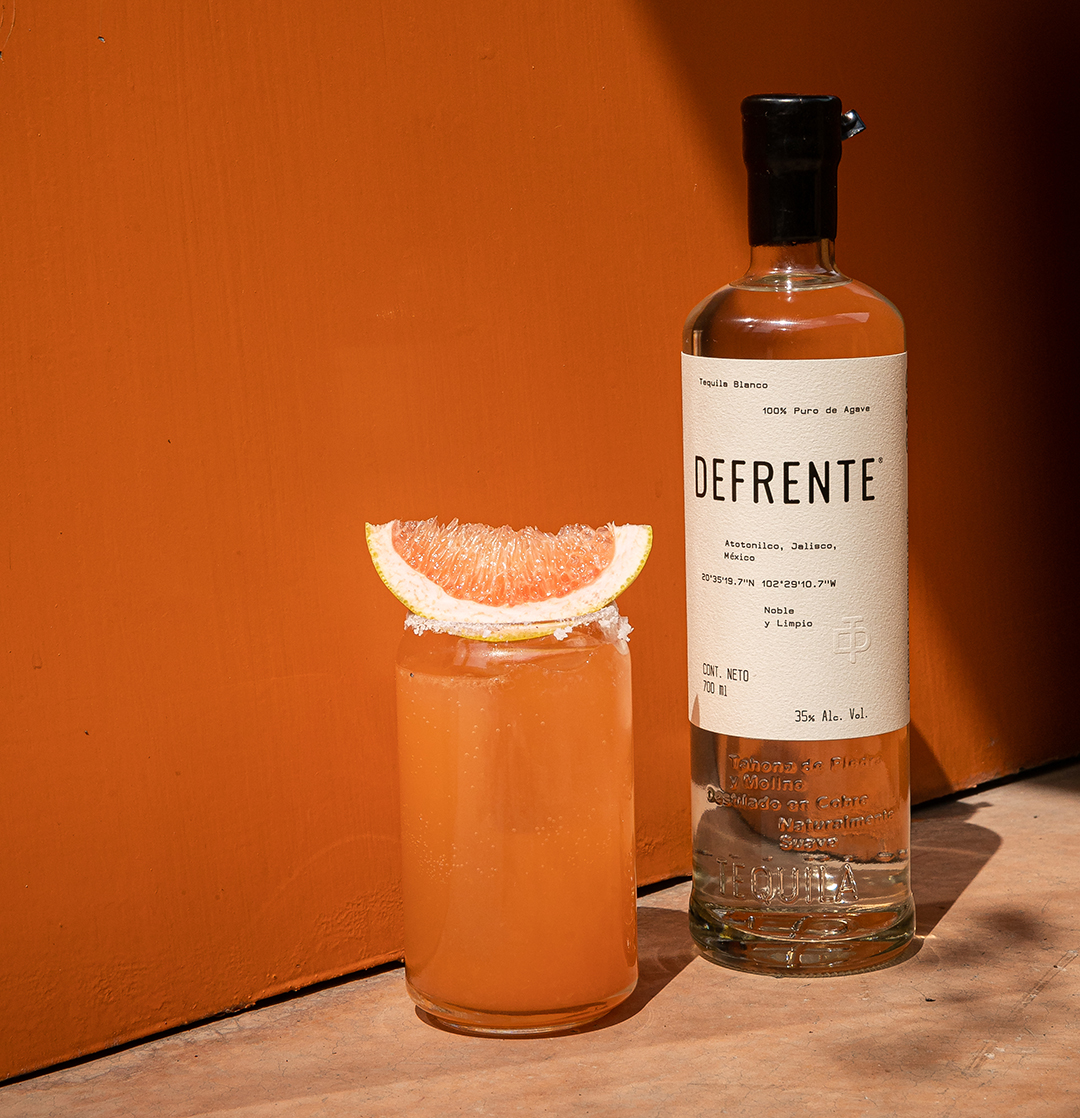 - Zutaten: 50 ml Tequila Blanco (wir empfehlen Defrente Tequila Blanco), 150 ml Grapefruit-Limonade, 1 Prise Salz, 1 Limettenspalte