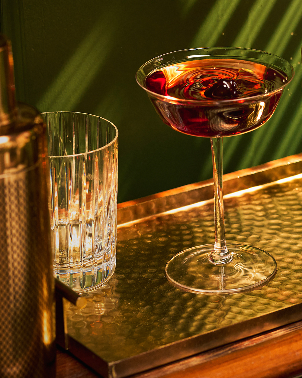 Zubereitung: Die Zutaten in ein Rührglas mit Eiswürfeln geben und kalt rühren. Den Drink in ein Coupette Glas abseihen und mit einer Cocktailkirsche garnieren.