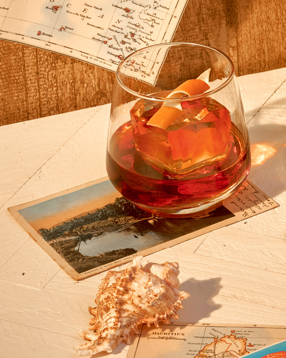 Zubereitung: Die Zutaten in ein Rührglas geben und kalt rühren. Den Drink in einen Tumbler abseihen und mit einer Orangenzeste garnieren.